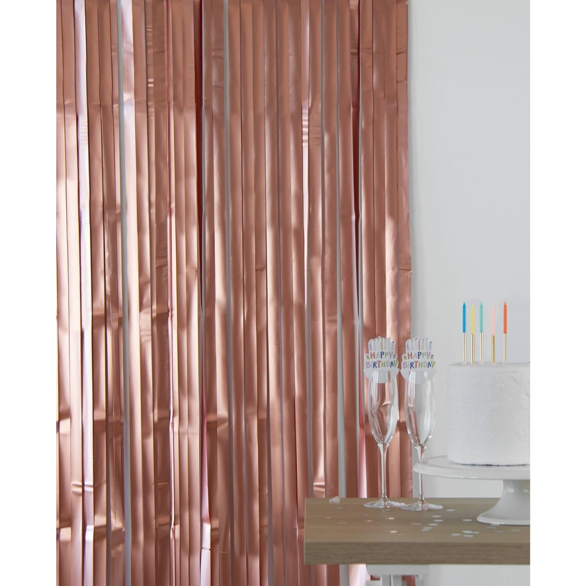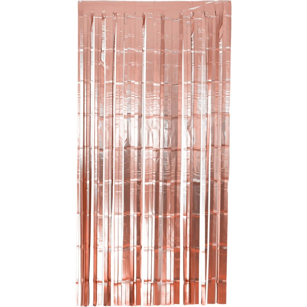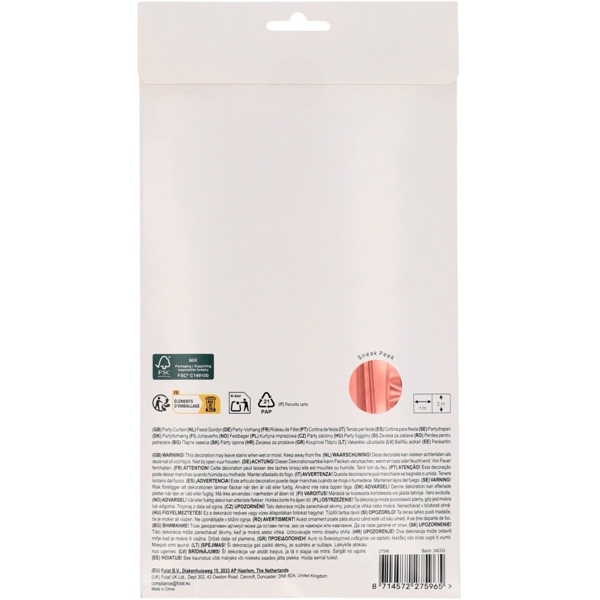 Miękki blask. Kurtyna imprezowa - matowe różowe złoto - 1 x 2 m. Zawartość: 1 kurtyna imprezowa. Do wykorzystania na przykład podczas następujących przyjęć/imprez okolicznościowych: Urodziny, Impreza tematyczna. Piękna kurtyna imprezowa z szerokimi paskami w kolorze różowym o szerokości 2,5 cm. Świetnie sprawdzi się jako kurtyna drzwiowa, ale także jako tło do specjalnych zdjęć. Dzięki poręcznemu samoprzylepnemu brzegowi ta kurtyna imprezowa jest łatwa do zawieszenia. Ten przedmiot jest wykonany z folii.
