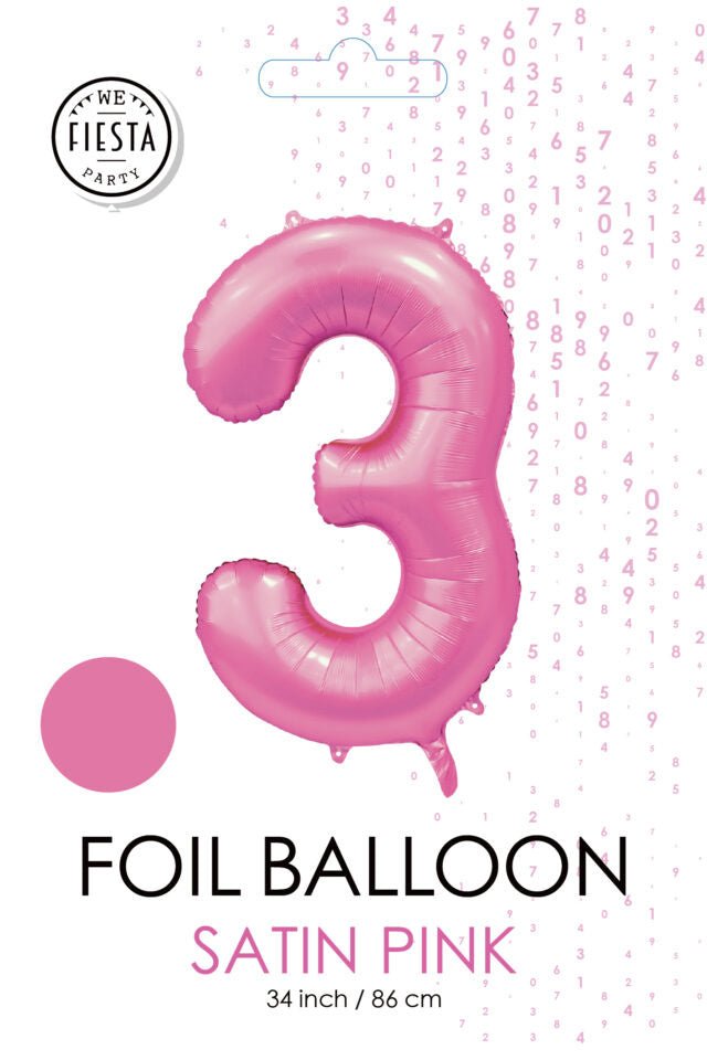 Różowy balon z figurką 3 lata, połysk 86 cm