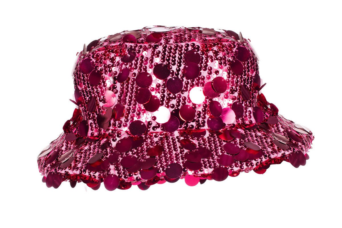 Uroczy różowy kapelusz rybaka z połyskującymi cekinami. Idealny jako dodatek na imprezy tematyczne, przebierane lub festiwale.