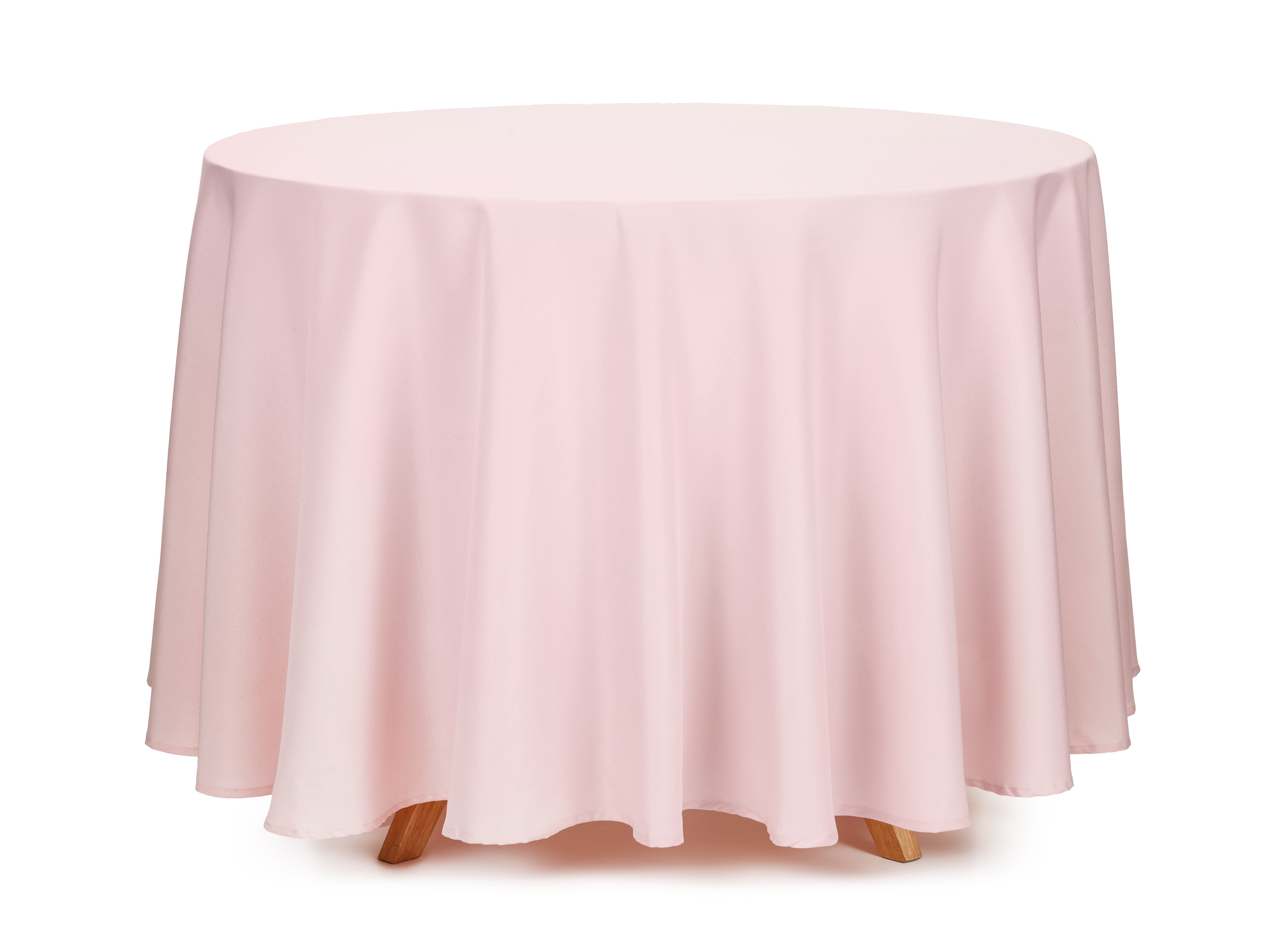 Obrus wykonany z matowej tkaniny w kolorze brudnego różu, okrągły, średnica 230cm