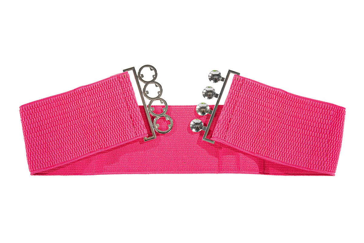 Uroczy elastyczny pasek w kolorze różowym ze srebrną klamrą. Idealny jako dodatek na imprezy, imprezy tematyczne lub fantazyjne stroje.