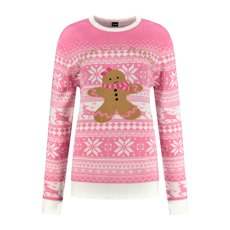 Ten różowy piernikowy sweter dla dzieci natychmiast tworzy radosną i słodką świąteczną atmosferę. Delikatny różowy kolor w połączeniu z uroczymi postaciami pierników sprawia, że ten sweter jest prawdziwym faworytem dla małych miłośników Bożego Narodzenia. Wygodny, ciepły i idealny na każdą świąteczną okazję w grudniu.