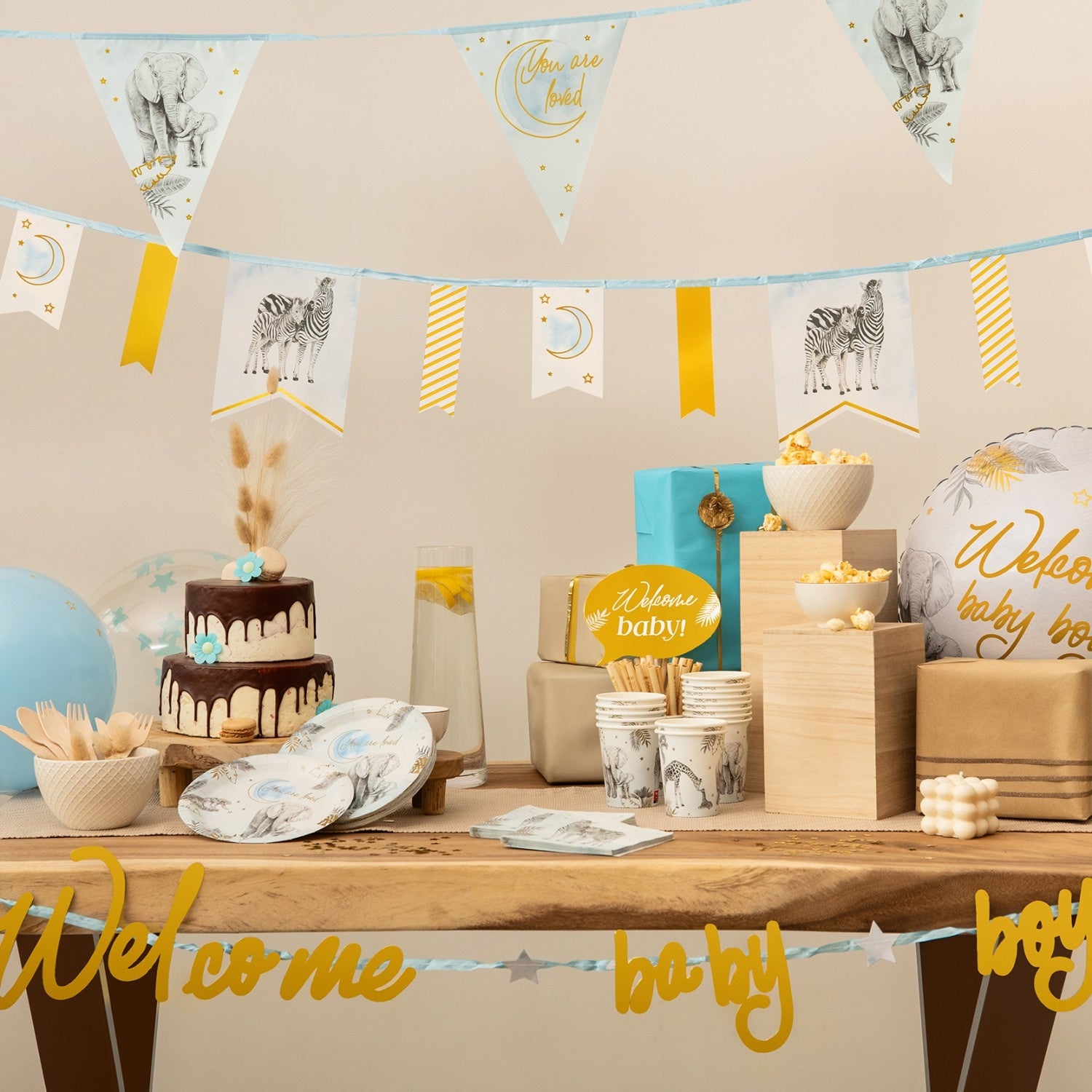 Flagline baby safari niebieski "Jesteś kochany" (6m)