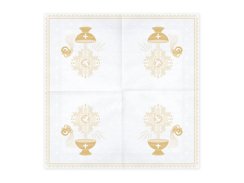 Opis Recenzje Informacje o tym produkcie Serwetki papierowe Chrzest Święty, białe ze złoto-różowym nadrukiem, rozmiar po rozłożeniu ok. 33 x 33 cm, rozmiar po połączeniu ok. 16,5 x 16,5 cm. Trustpilot