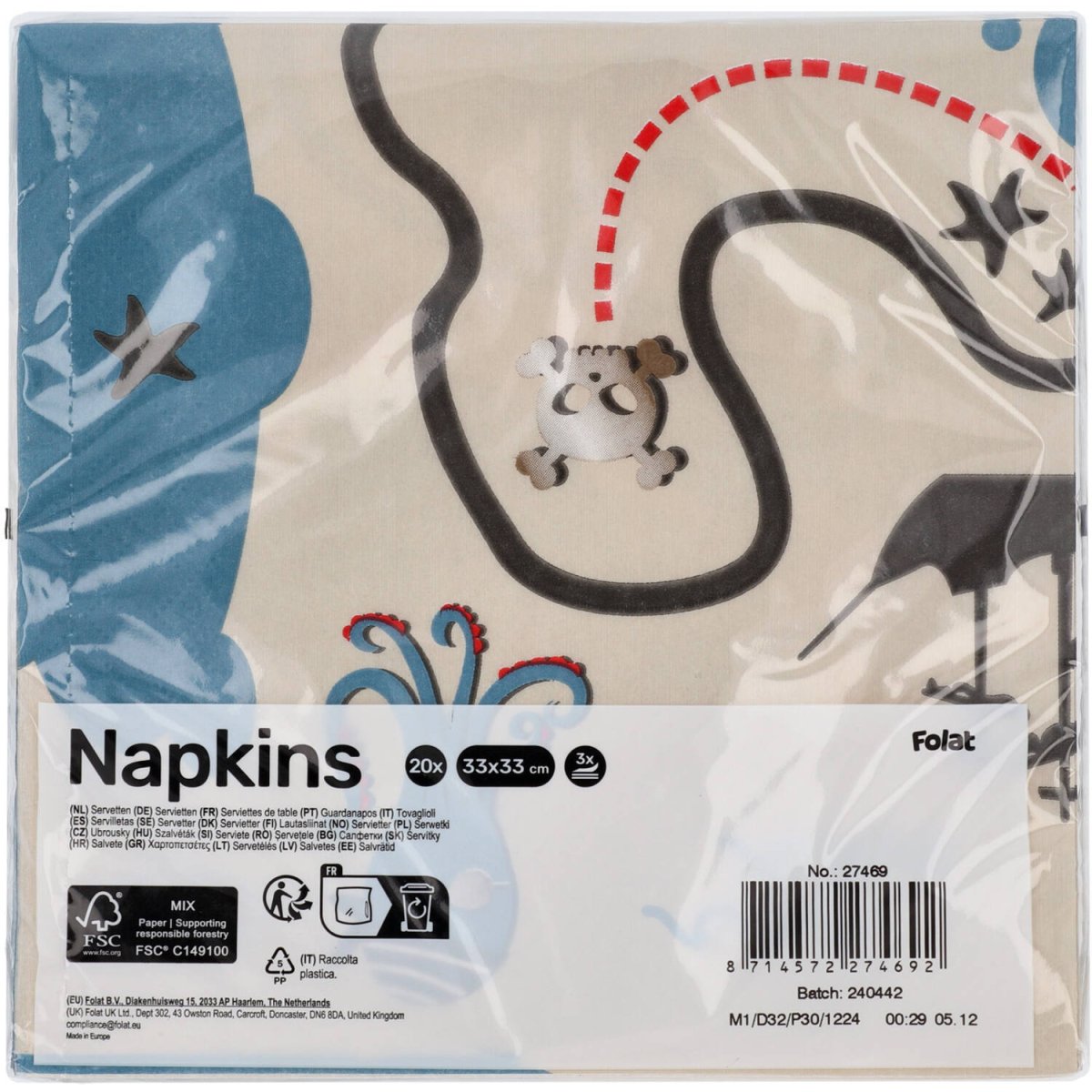 Dla prawdziwych piratów. Serwetki - Pirackie Party - 33 x 33 cm - 20 szt. Zawartość: 20 serwetek. Do wykorzystania na przykład podczas następujących przyjęć/imprez: Impreza dla dzieci, Urodziny, Impreza tematyczna. Papierowe serwetki z fajnym i pełnym przygód pirackim wzorem. Serwetki mają wymiary 33 x 33 cm i należą do kolekcji Pirate Party marki