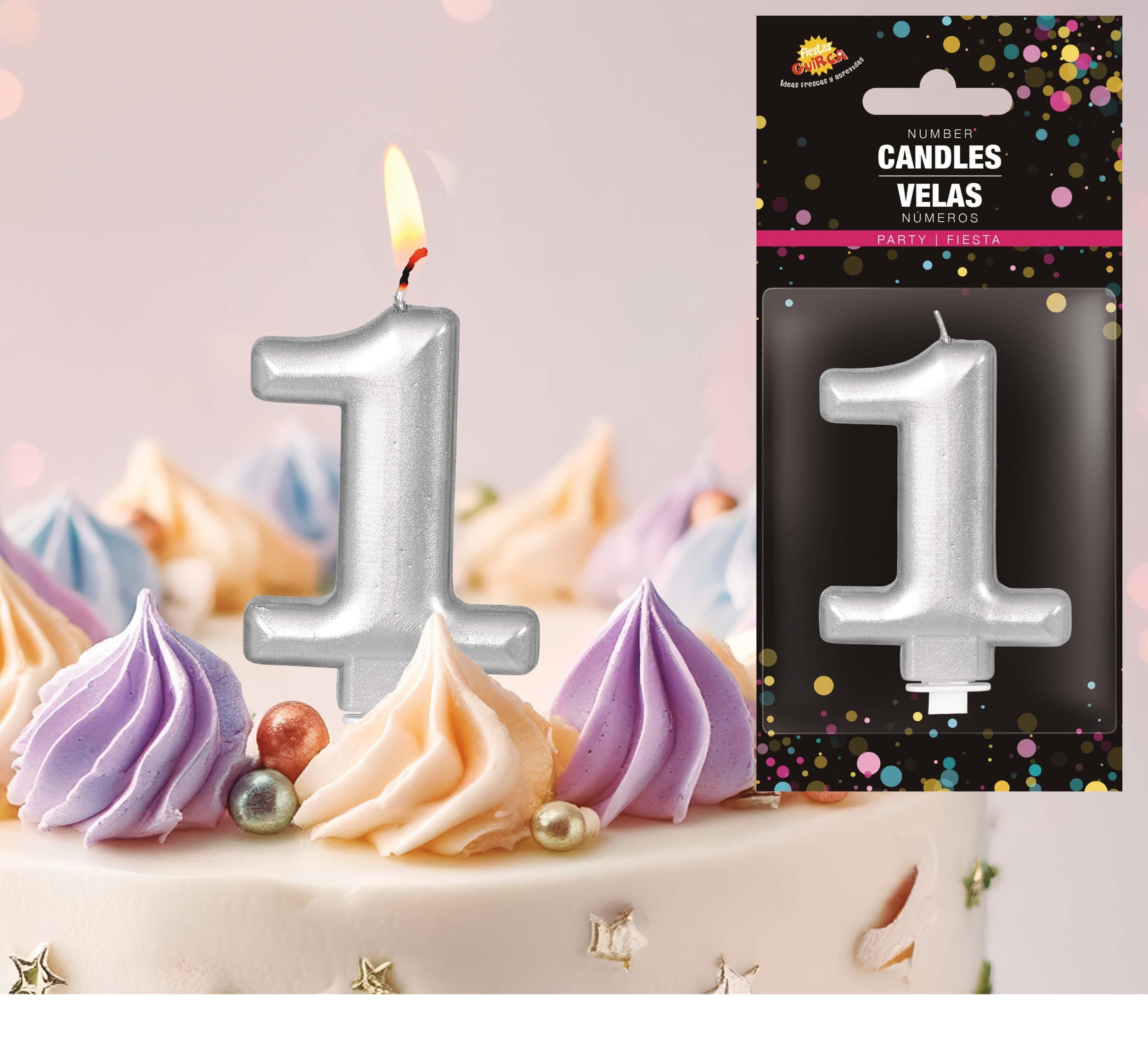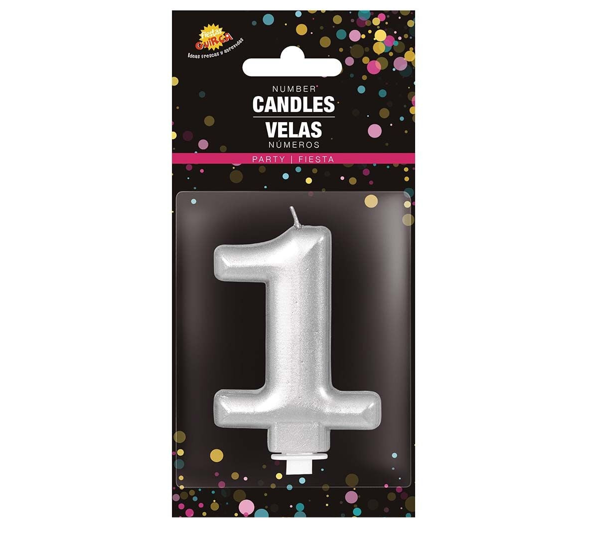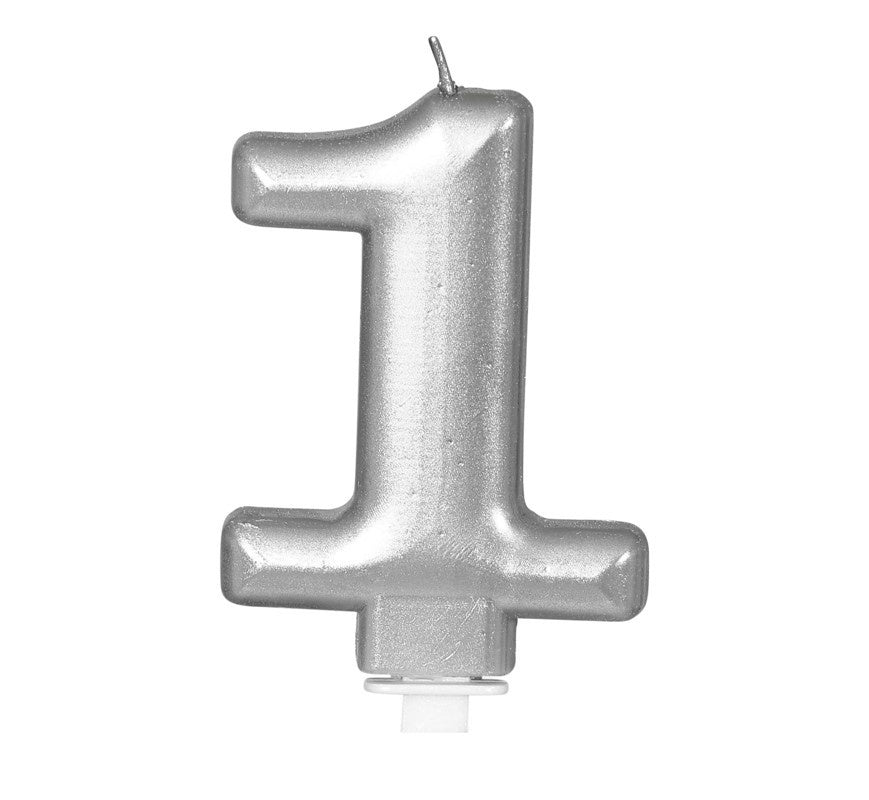 Srebrna świeczka na 1 rok, metaliczna, 8 cm