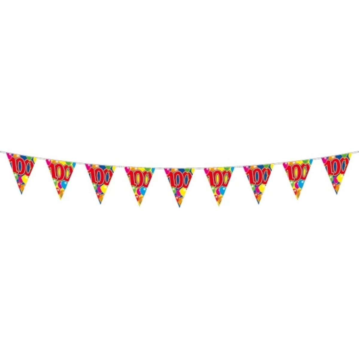 100 Year Slinger Balloons - 10 metrów. Zawartość: 1 linka flagowa. Kolor: Wielokolorowy. Motyw produktu: Balony. Do wykorzystania na przykład podczas następujących przyjęć/imprez: urodziny. Ta girlanda ma 10 metrów długości. Artykuł jest wykonany z tworzywa sztucznego.