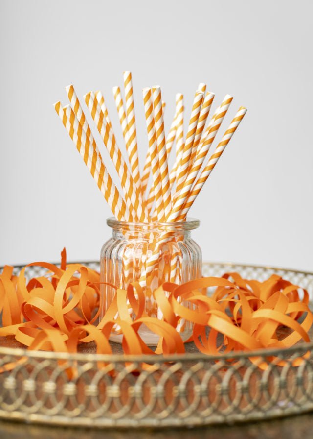 Słomki papierowe pomarańczowe w paski 19,7 cm 20 szt