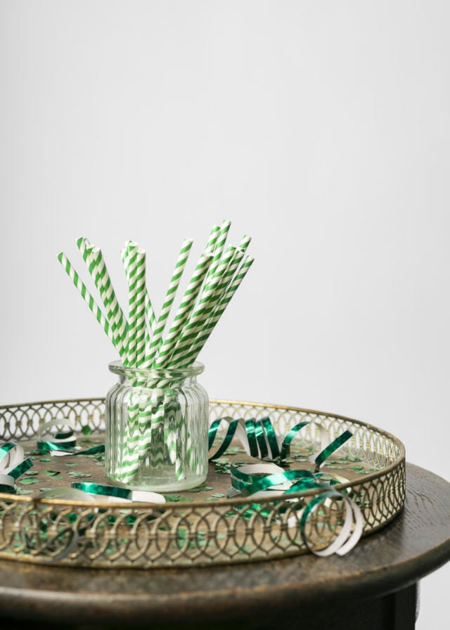 Słomki papierowe w zielone paski 19,7 cm 20 szt