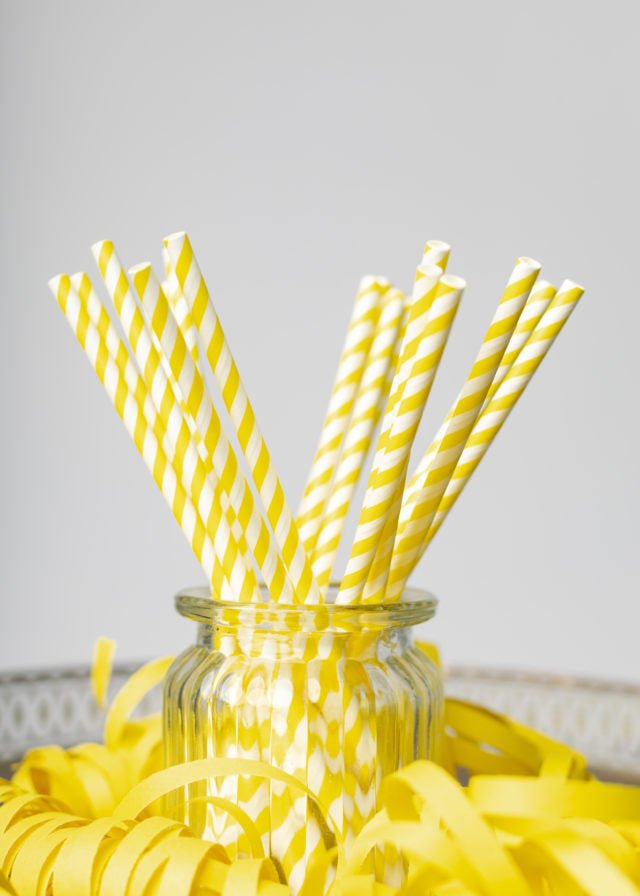 Zawartość opakowania:Słomki papierowe żółte w paski 19,7cm 20szt