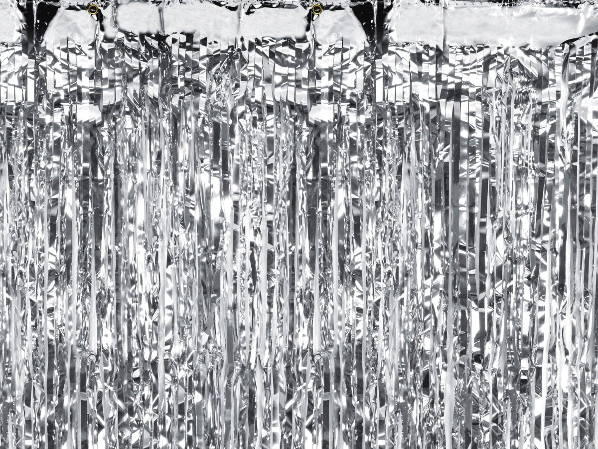 Zawartość: Kurtyna imprezowa, srebrna, szerokość ok. 90 cm, wysokość ok. 250 cm.