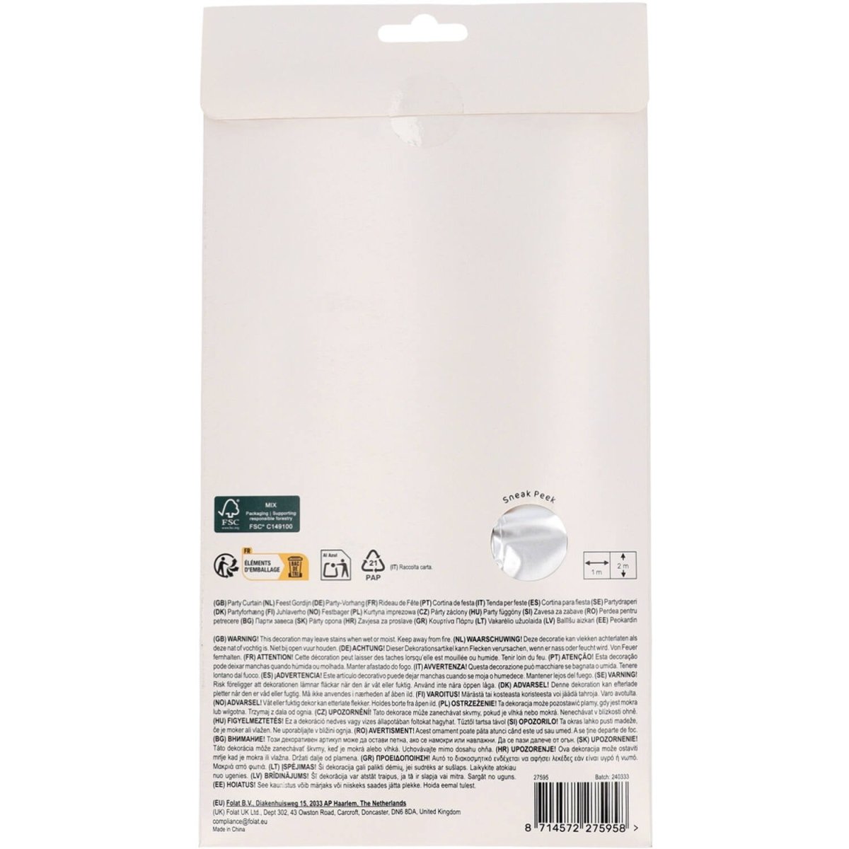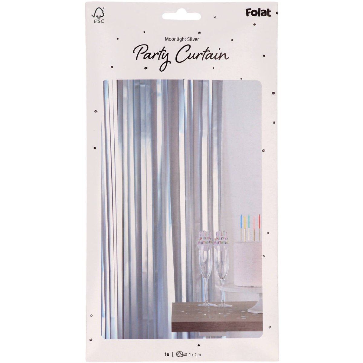 Na błyszczące przyjęcie. Kurtyna imprezowa - srebrny mat - 1 x 2 m. Zawartość: 1 kurtyna imprezowa. Do wykorzystania na przykład podczas następujących przyjęć/imprez okolicznościowych: Urodziny, Impreza tematyczna. Elegancka kurtyna imprezowa z szerokimi srebrnymi paskami o szerokości 2,5 cm. Świetnie sprawdzi się jako kurtyna drzwiowa, ale także jako tło do pięknych zdjęć. Dzięki poręcznemu samoprzylepnemu brzegowi ta kurtyna imprezowa jest łatwa do zawieszenia. Ten artykuł jest wykonany z folii.