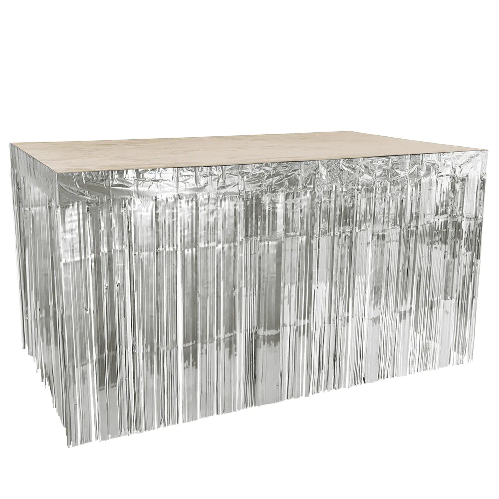 Dodaj odrobinę blasku i elegancji do swojego przyjęcia dzięki tej oszałamiającej srebrnej spódnicy na stół z metalicznymi frędzlami! Niezależnie od tego, czy jest to wesele, przyjęcie urodzinowe, Boże Narodzenie czy specjalna kolacja, ta spódnica na stół zamieni każdy stół w zapierającą dech w piersiach wizytówkę i nada Twojemu przyjęciu luksusowy wygląd.