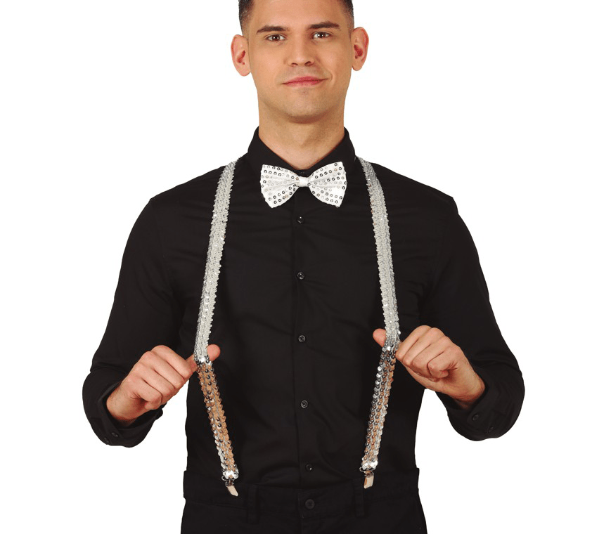 Srebrne szelki z cekinami dla mężczyzn 72 cm