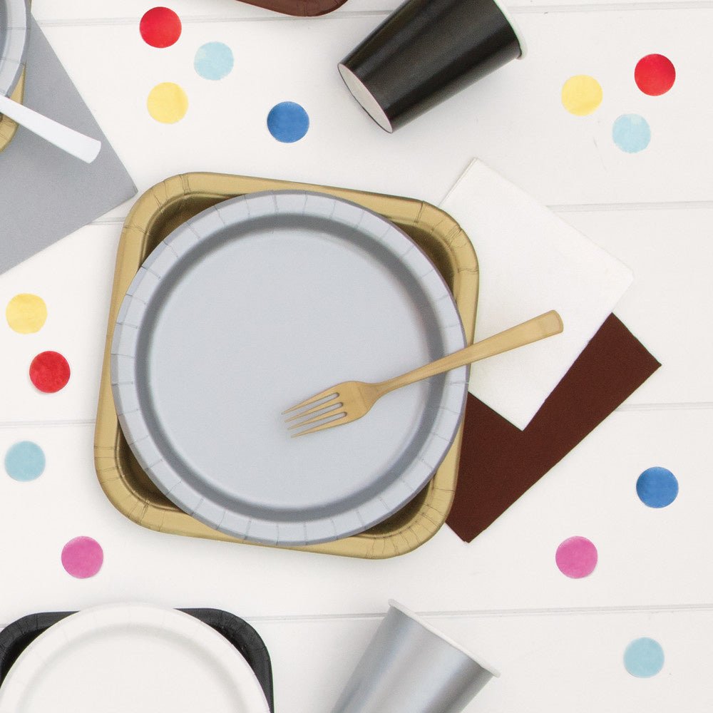 Zawartość opakowania:Talerze srebrne okrągłe 23cm 16szt
