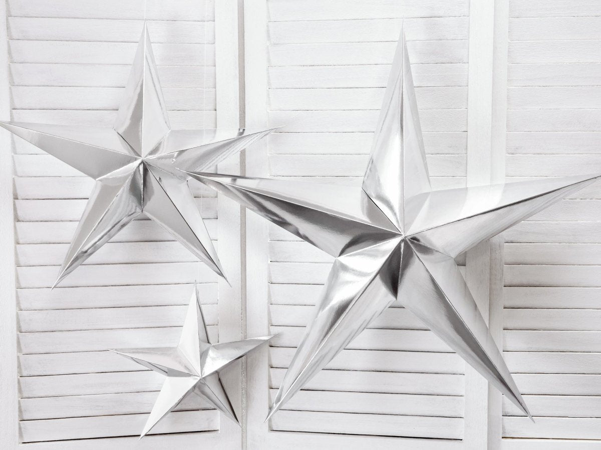 Zawartość opakowania: Srebrna Gwiazda Lampion 70 cm