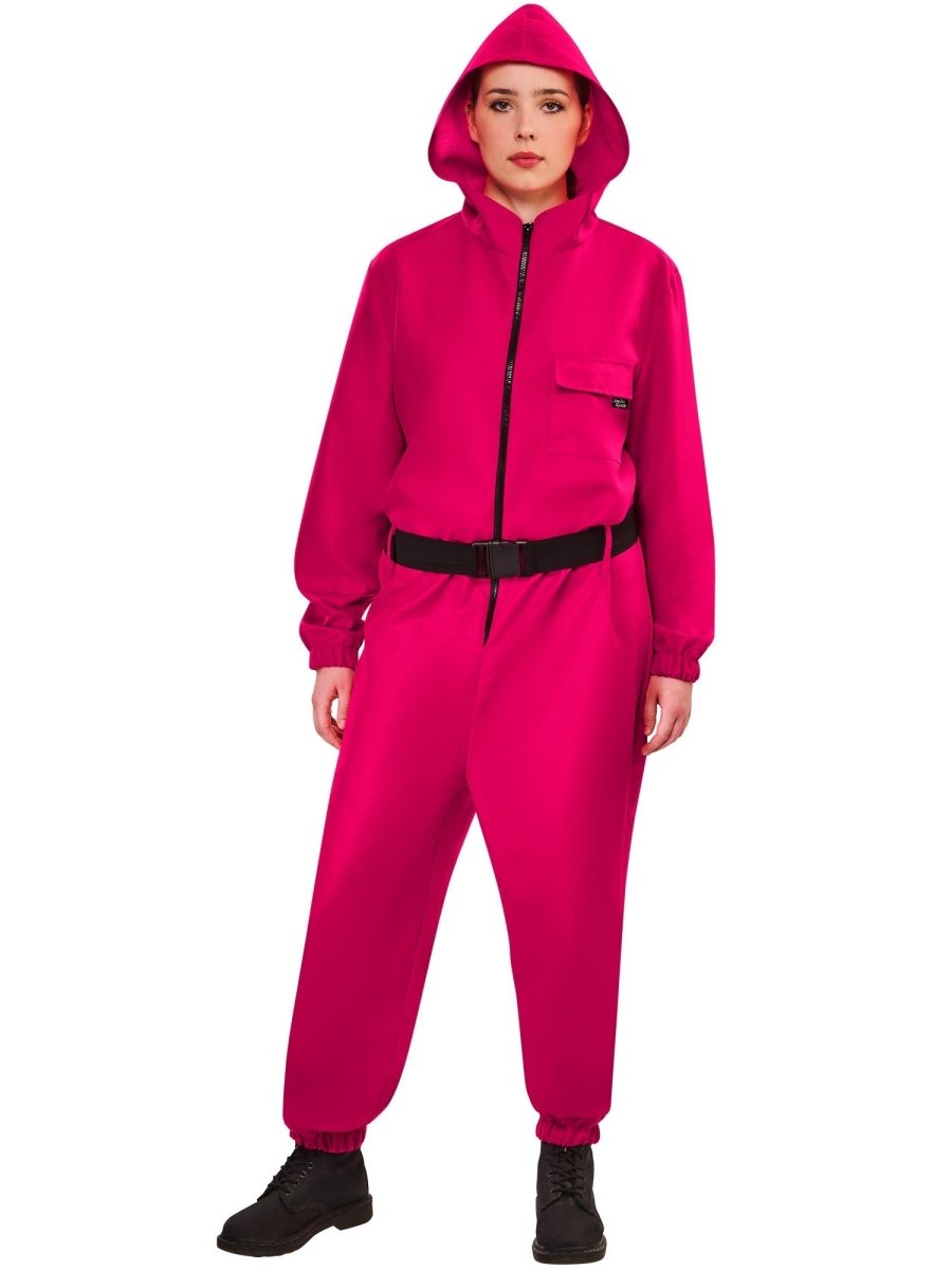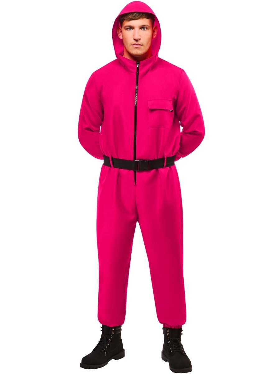 Uhonoruj kultowy wygląd Strażników tym efektownym czerwonym kombinezonem, inspirowanym globalnym hitem Netflix Squid Game. Zaprojektowany z imponującym kapturem i pasującym paskiem, ten kostium natychmiast przekształci Cię w jednego z niezapomnianych egzekutorów z serialu