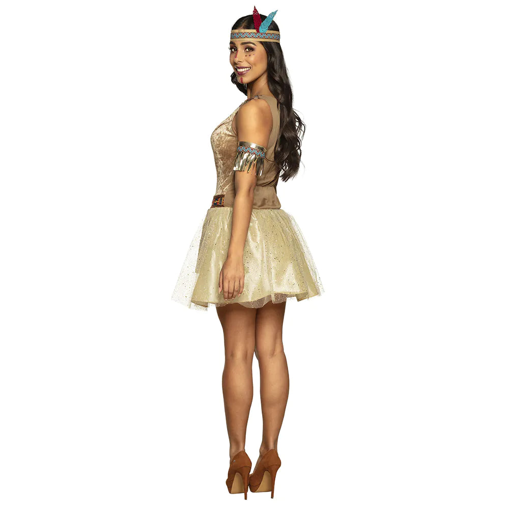 Ten piękny kostium Bright Hawk dla dorosłych to idealny strój dla wszystkich kobiet, które chcą się przebrać podczas karnawału lub balu przebierańców, ale chcą wyglądać stylowo. Ten zabawny kostium składa się z krótkiej sukienki wykonanej z miękkiego materiału z tiulową spódniczką, brązowej przepaski na biodra ozdobionej rodzimym motywem, złotej bransoletki z frędzlami i, dla uzupełnienia stroju, opaski na głowę z piórami.