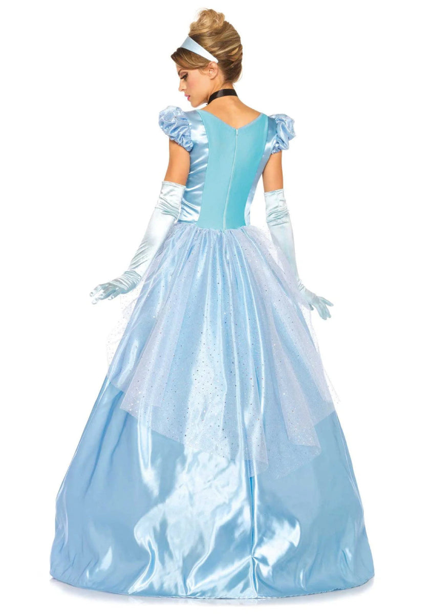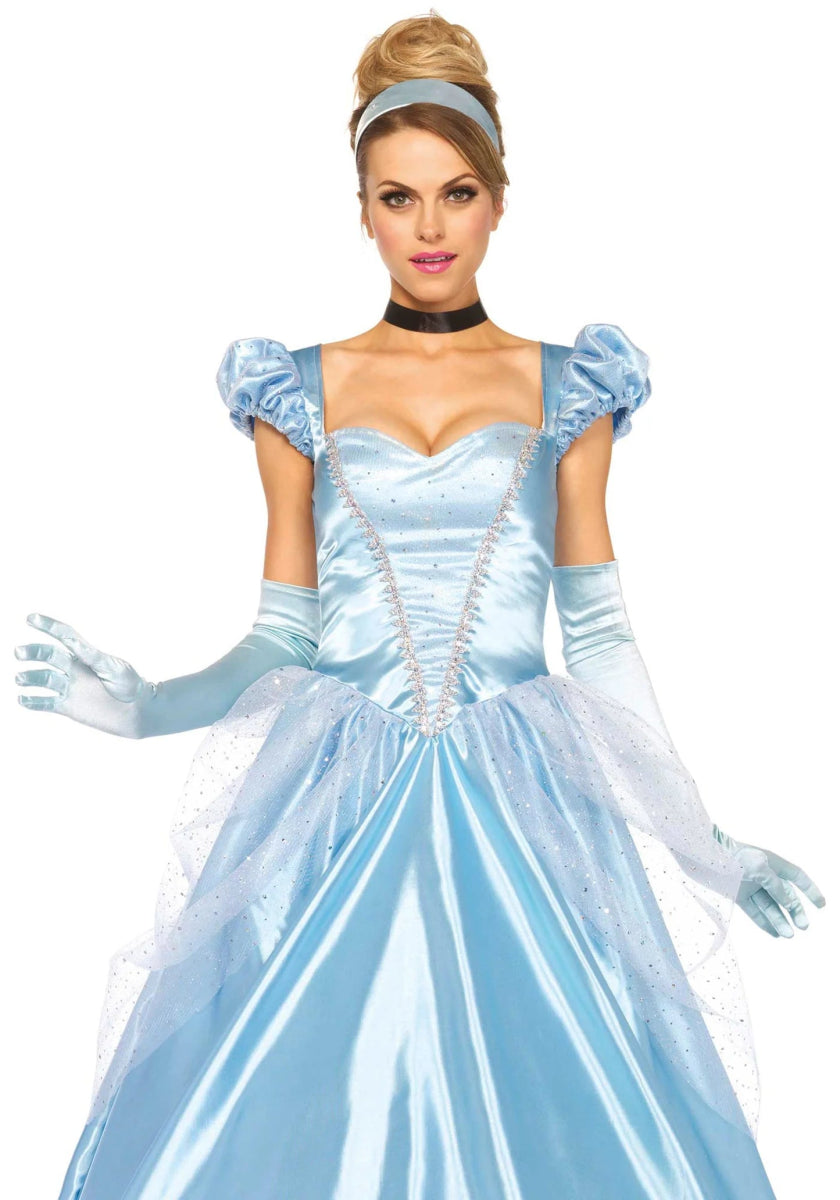 Przeżyj swoją własną bajkę w tym 3-częściowym klasycznym kostiumie Kopciuszka od Leg Avenue! Ten zestaw zawiera długą satynową sukienkę z brokatowymi tiulowymi akcentami, satynowy choker i pasującą opaskę do włosów. Kostium jest idealny na Halloween, bajkowe imprezy lub jeśli chcesz stworzyć czarujący wygląd księżniczki! 🌟🎃