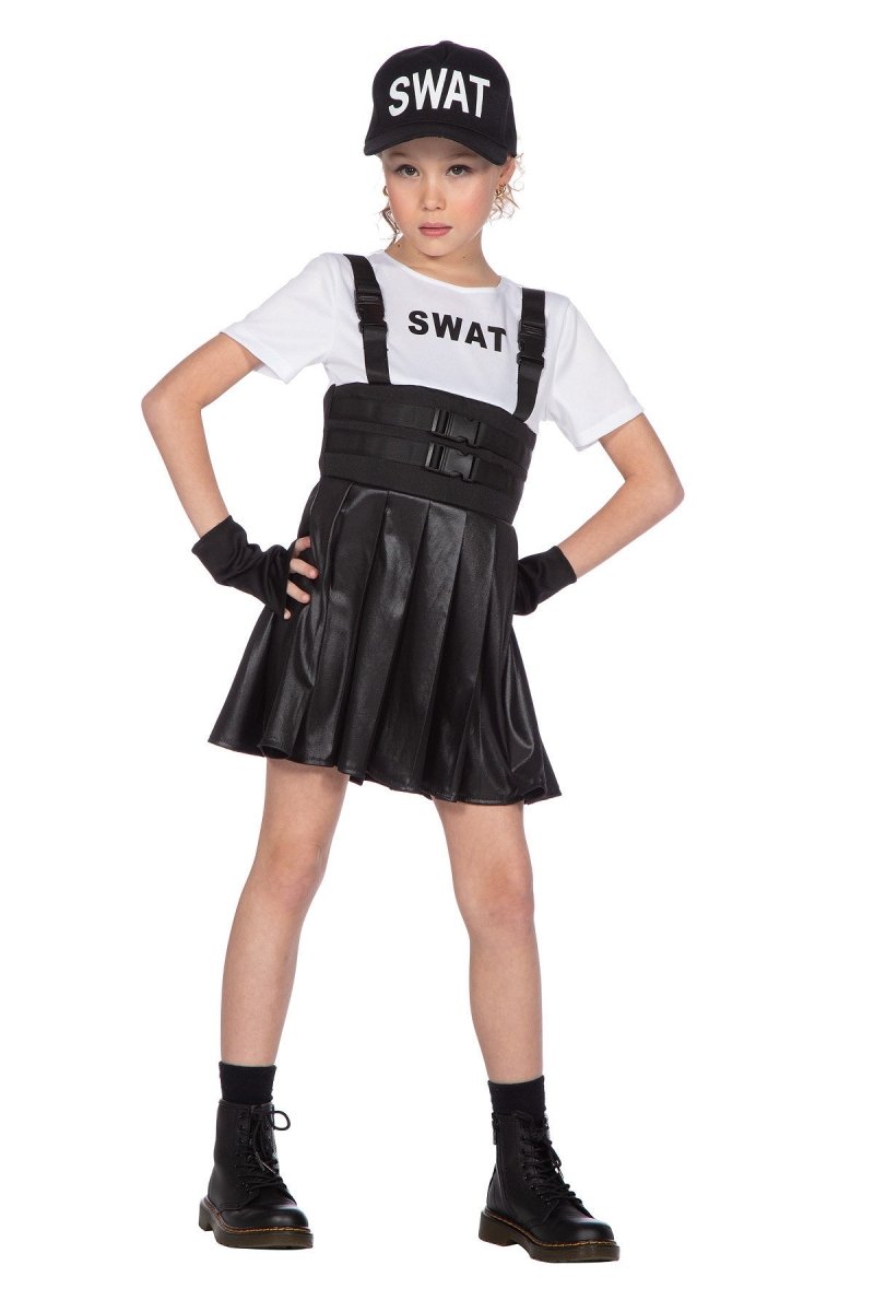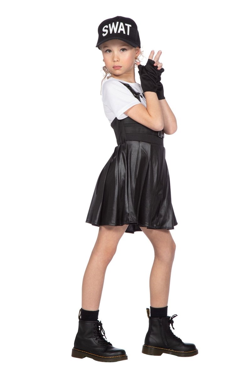 Wytrzymały czarny strój SWAT dla dzieci, idealny na bale przebierańców lub imprezy tematyczne.