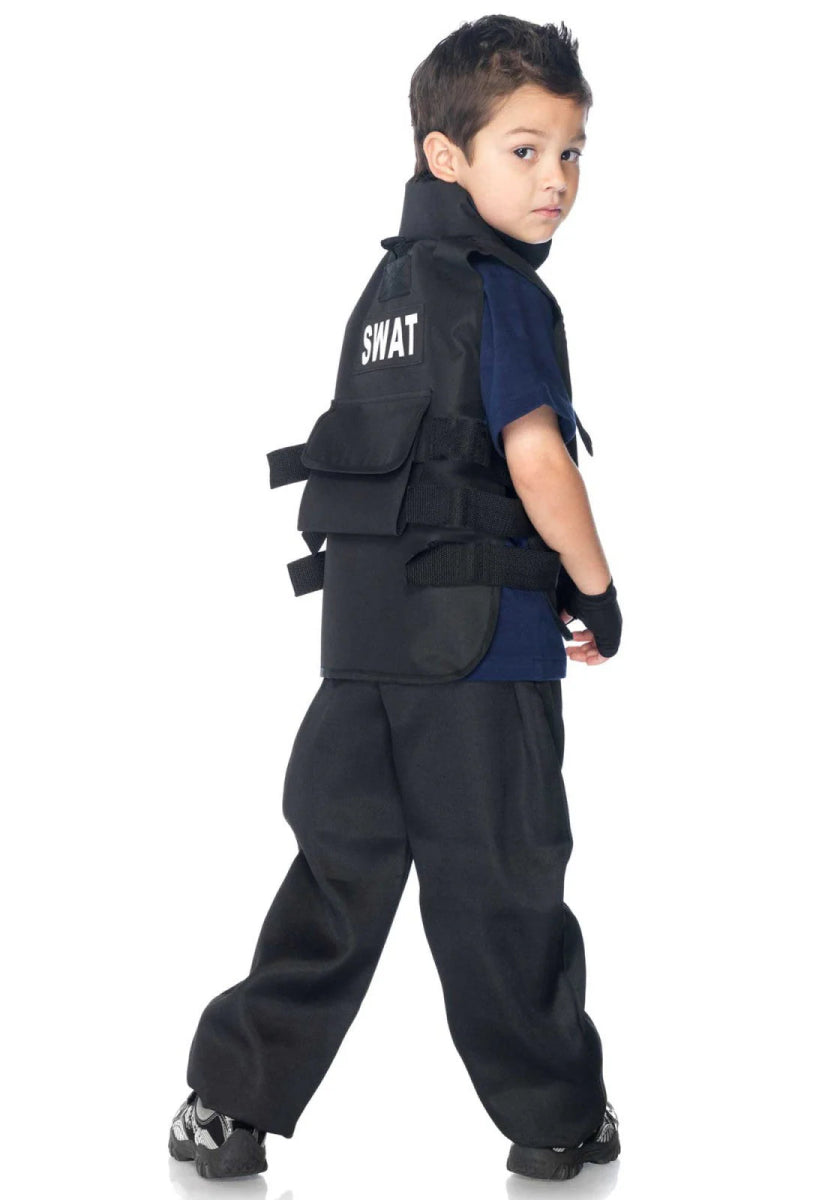 Złe chłopaki, co zrobicie, gdy natkniecie się na tego oficera SWAT? Ten fajny kostium na Halloween dla dzieci składa się z kamizelki taktycznej z odznakami SWAT i funkcjonalnymi kieszeniami, w połączeniu z pasującymi rękawiczkami bez palców. Załóż go na własną koszulę i spodnie i jesteś gotowy do akcji! 💥🚨