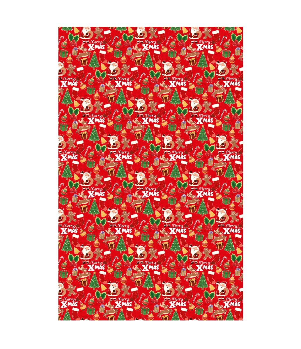 Kolor/wzór: czerwony z postaciami świątecznymi (Mikołaj, choinka, prezenty, ciasteczka)