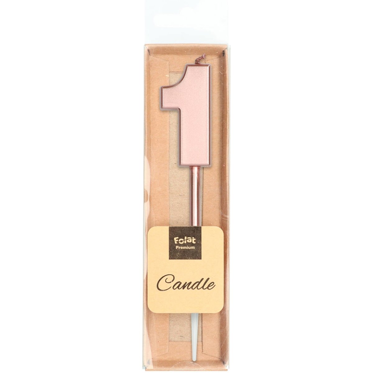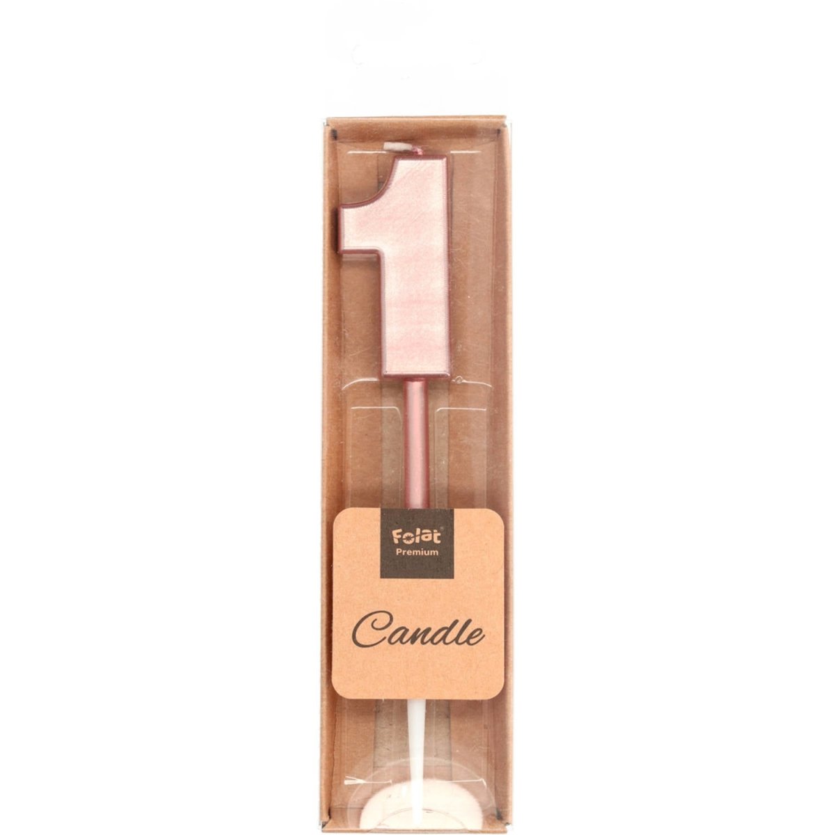 Świeca numer 1 Rose Gold Metallic. Zawartość: 1 świeca. Kolor: różowe złoto. Do wykorzystania na przykład podczas następujących uroczystości/imprez: Urodziny, Rocznica i Przyjęcie dla dzieci. Wymiary: 14 cm wysokości. Artykuł jest wykonany z wosku.