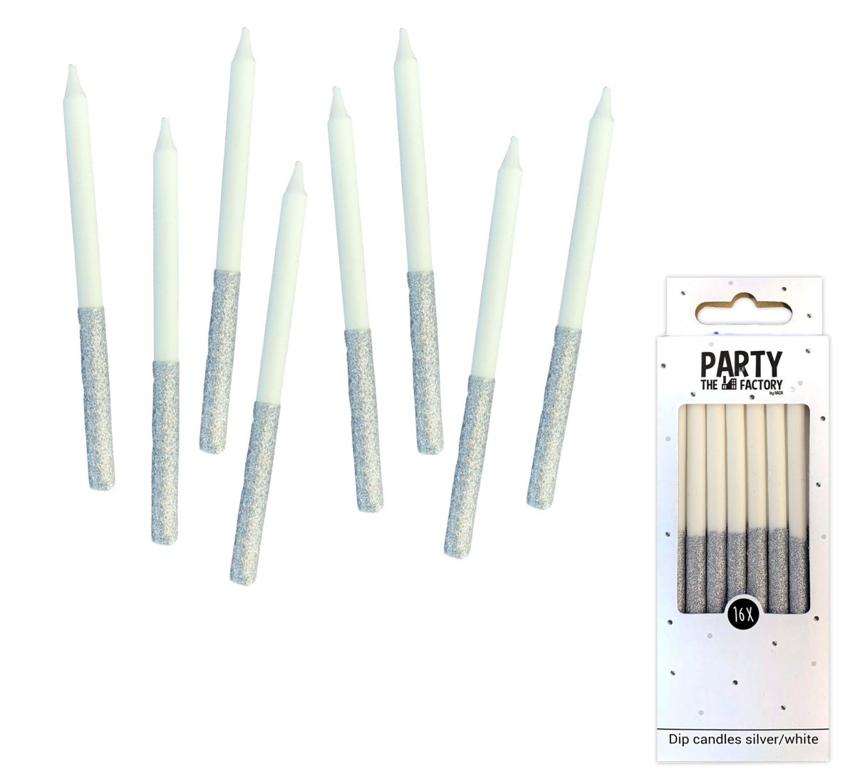 Świeczki Glitter Dip White Silver 8cm 16szt