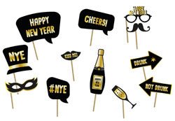 Sylwestrowe rekwizyty do fotobudki 12 sztuk