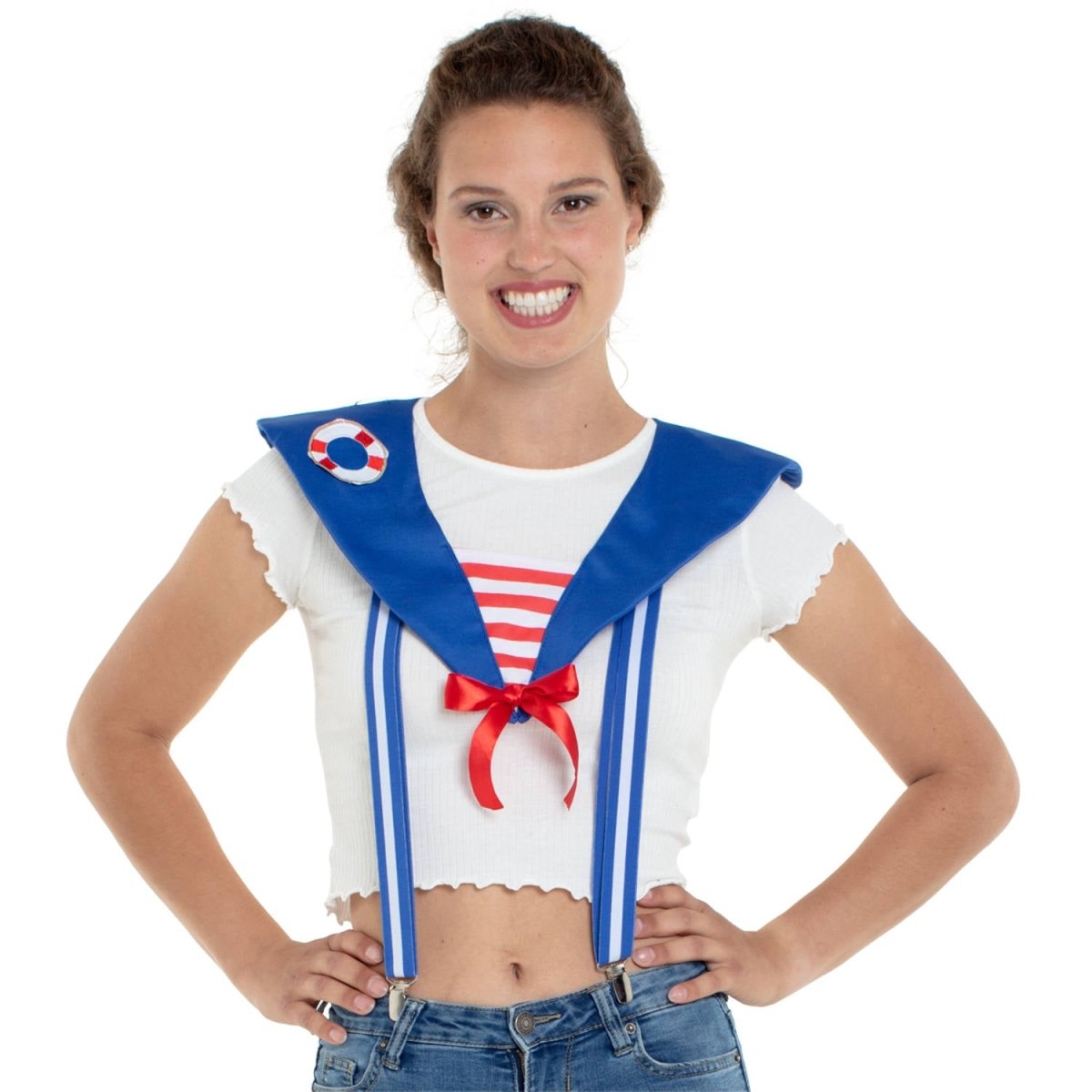 Dopełnij swój strój tymi niebieskimi szelkami marynarskimi dla dorosłych. Zabawny i stylowy dodatek na karnawał, festiwale lub imprezy tematyczne.