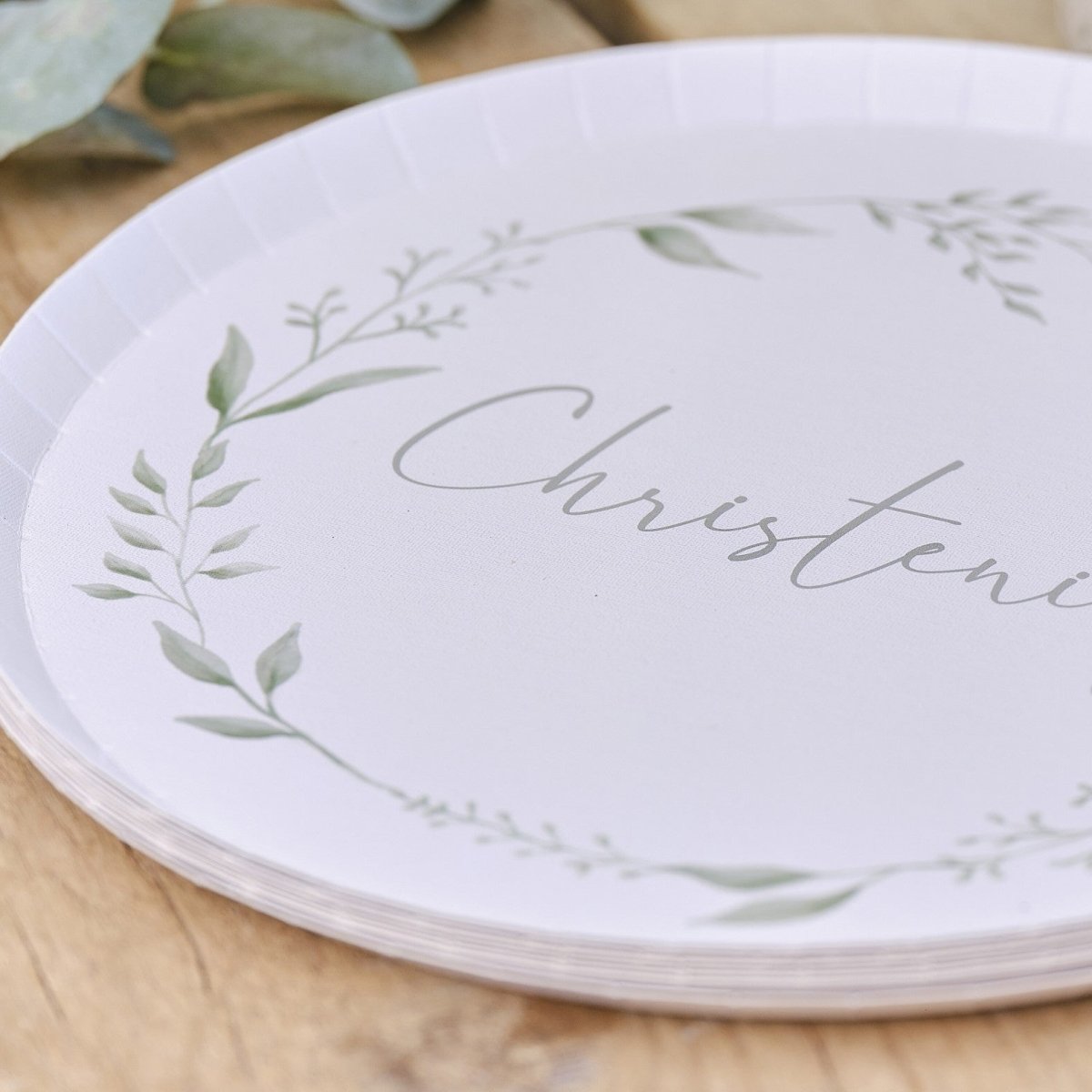 Nadaj swojemu chrztowi botaniczny charakter dzięki tym pięknym papierowym talerzom.