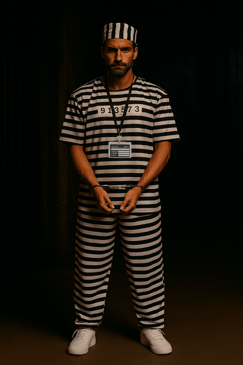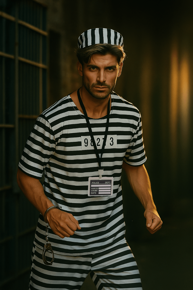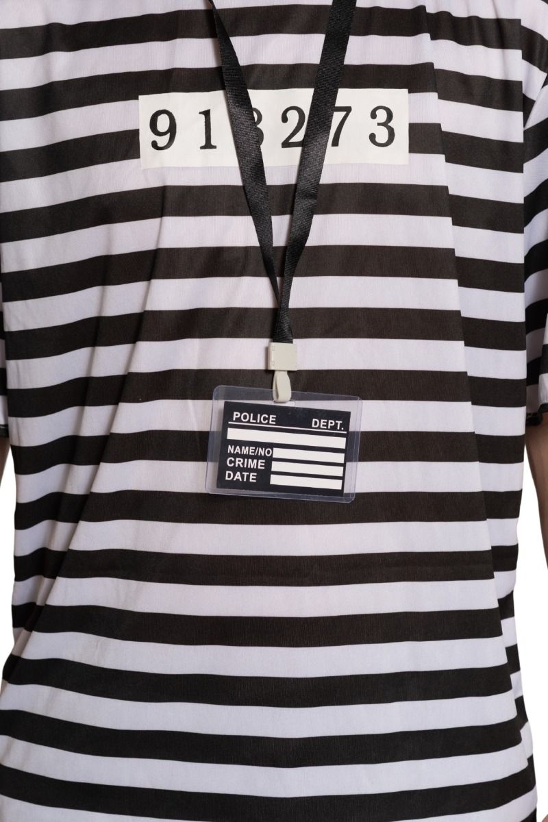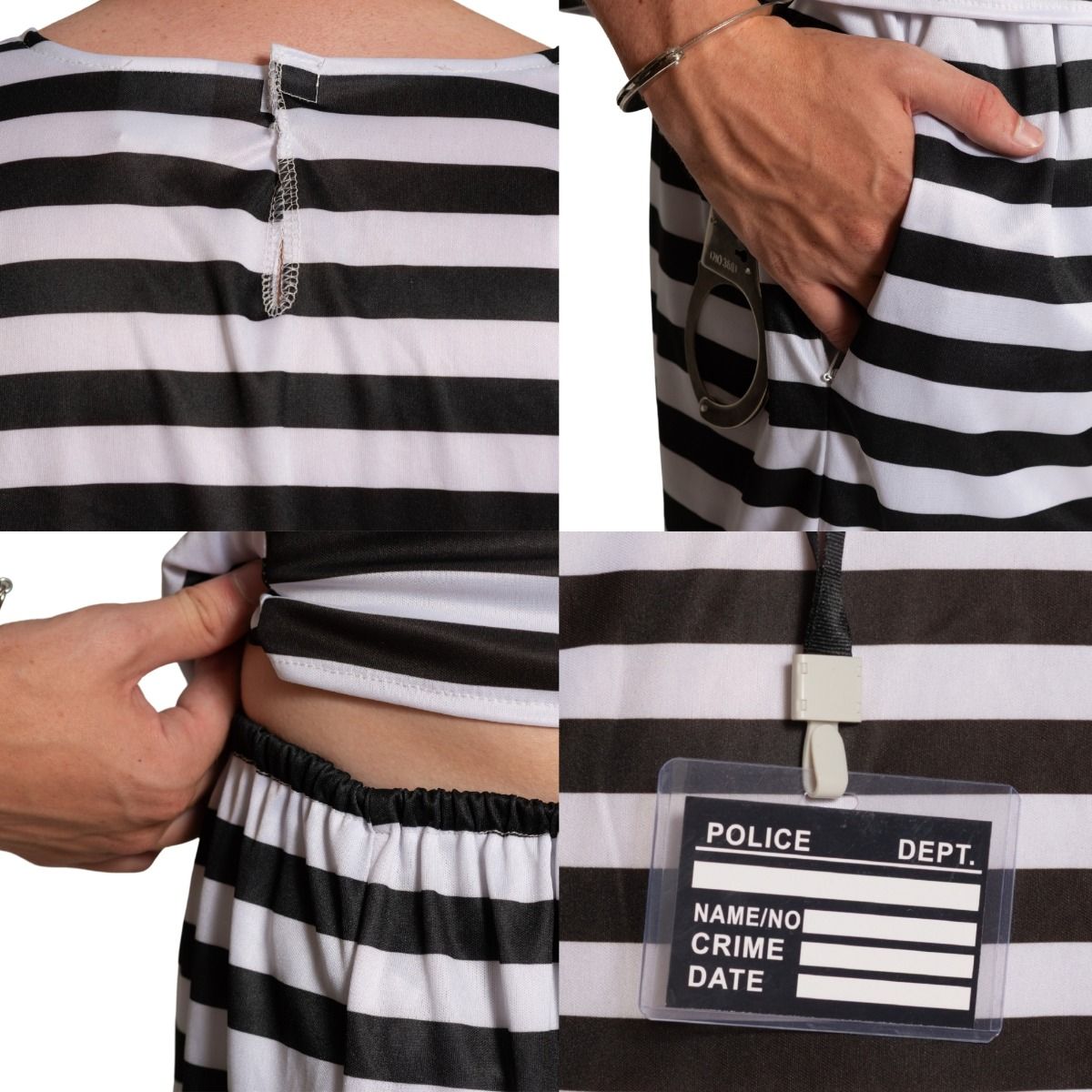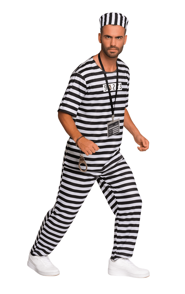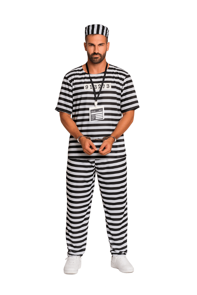 Postaw na klasyczny więzienny wygląd w tym męskim kostiumie w czarno-białe paski. Idealny na karnawał, przebierane imprezy, złe imprezy lub wieczory kawalerskie.