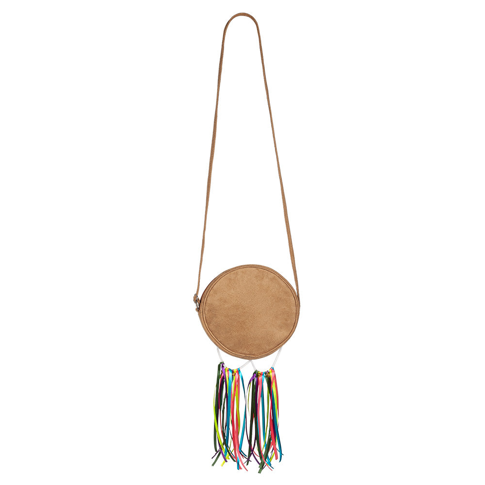 Cofnij się do lat flower power dzięki tej kolorowej torbie na ramię w stylu hippie. Okrągły wzór ze znakiem pokoju i wesołymi wstążkami nadaje każdemu strojowi zabawny klimat retro lat 70. Idealna na festiwale, imprezy tematyczne lub letnie dni.