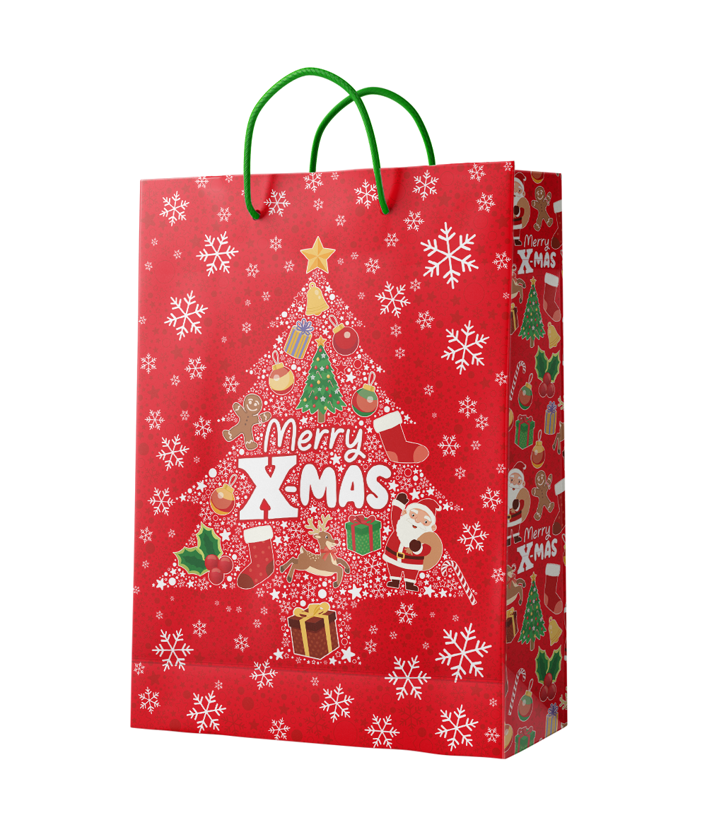 Spraw, aby Twoje prezenty świąteczne były jeszcze bardziej świąteczne dzięki tej przestronnej torbie prezentowej X-mas. Torba jest wykonana z wytrzymałego papieru i plastiku i ma duży rozmiar, dzięki czemu z łatwością zapakujesz w nią większe prezenty. Idealna do stylowego i łatwego pakowania prezentów świątecznych.