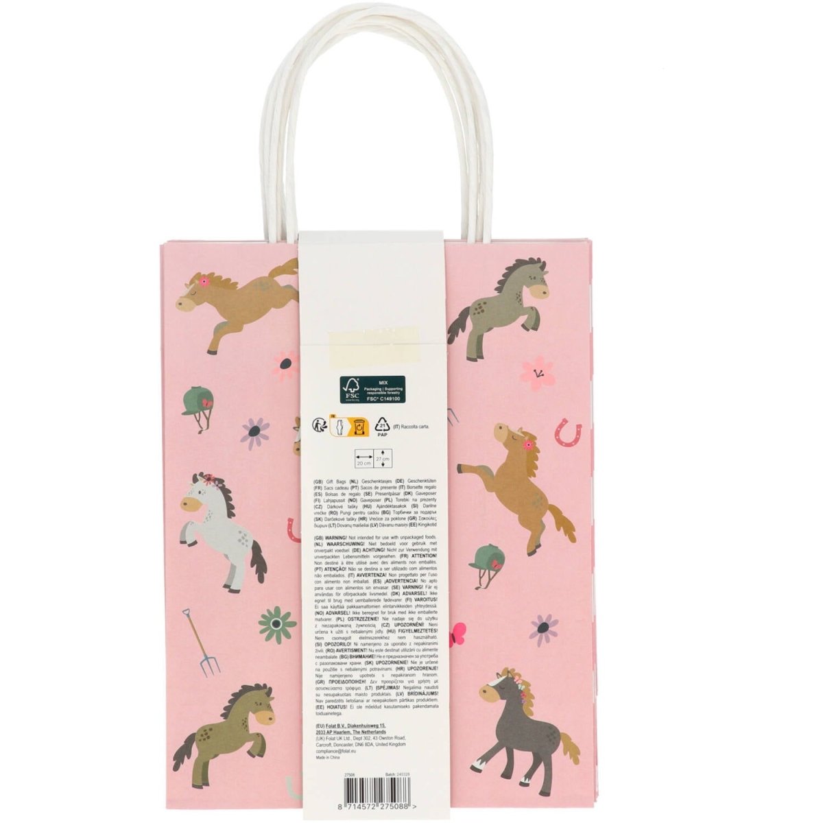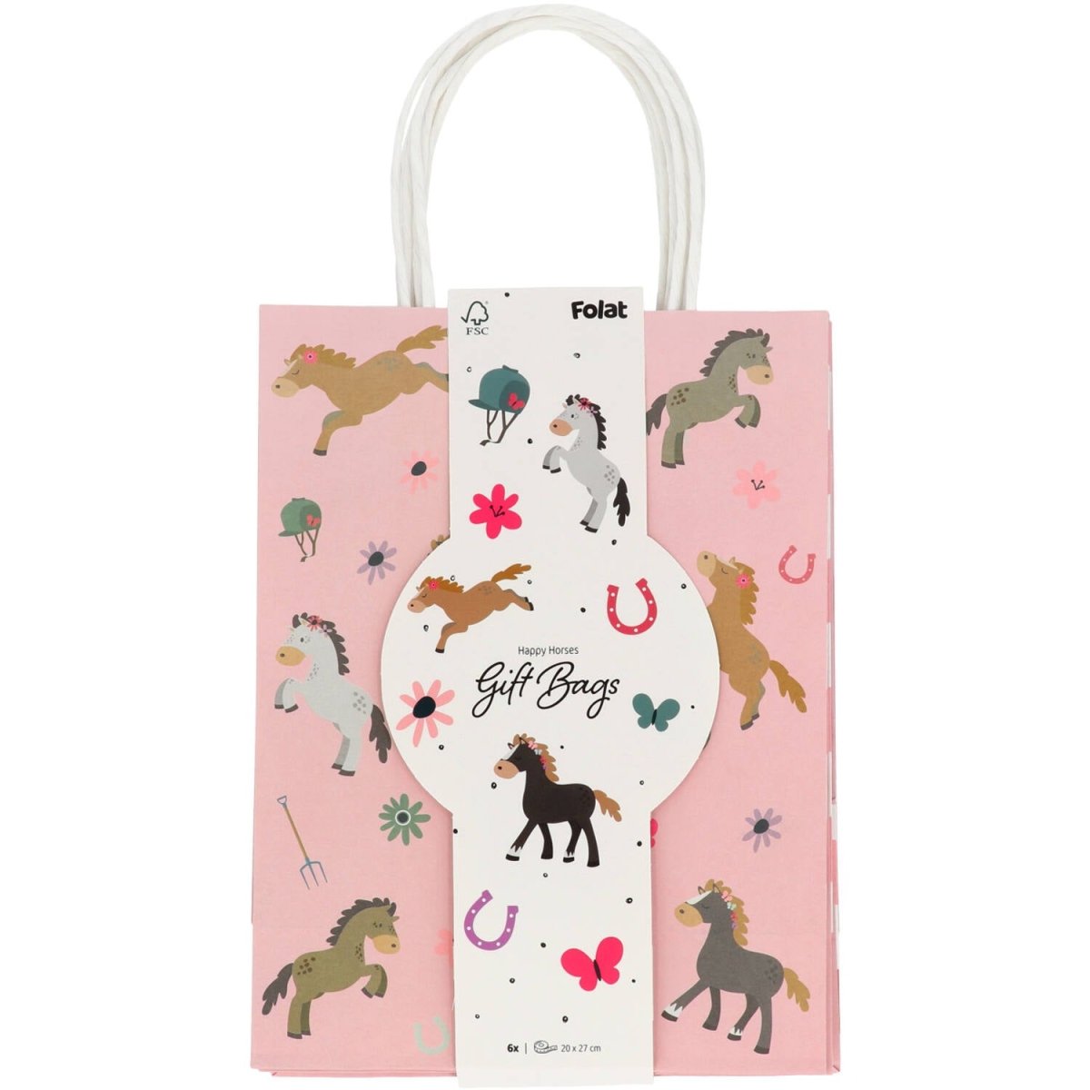 Każdy fan koni chce mieć taką torbę! Torebki na prezenty - Happy Horses - 20 x 27 cm - 6 szt. Zawartość: 6 torebek na prezenty. Do wykorzystania na przykład podczas następujących przyjęć/imprez: Impreza dla dzieci, Urodziny, Impreza tematyczna. Wesołe torebki na prezenty o wymiarach 20 x 27 x 10 cm. Miękki różowy nadruk z wesołymi końmi i wszystkim, co się z nimi wiąże. Boki torebek mają kraciasty wzór jasnoróżowych, szaro-zielonych i ciemnoróżowych kratek na białym tle. Wraz z uchwytem torby mają około 37 cm hoog.Deze Torby na prezenty należą do kolekcji Happy Horses marki