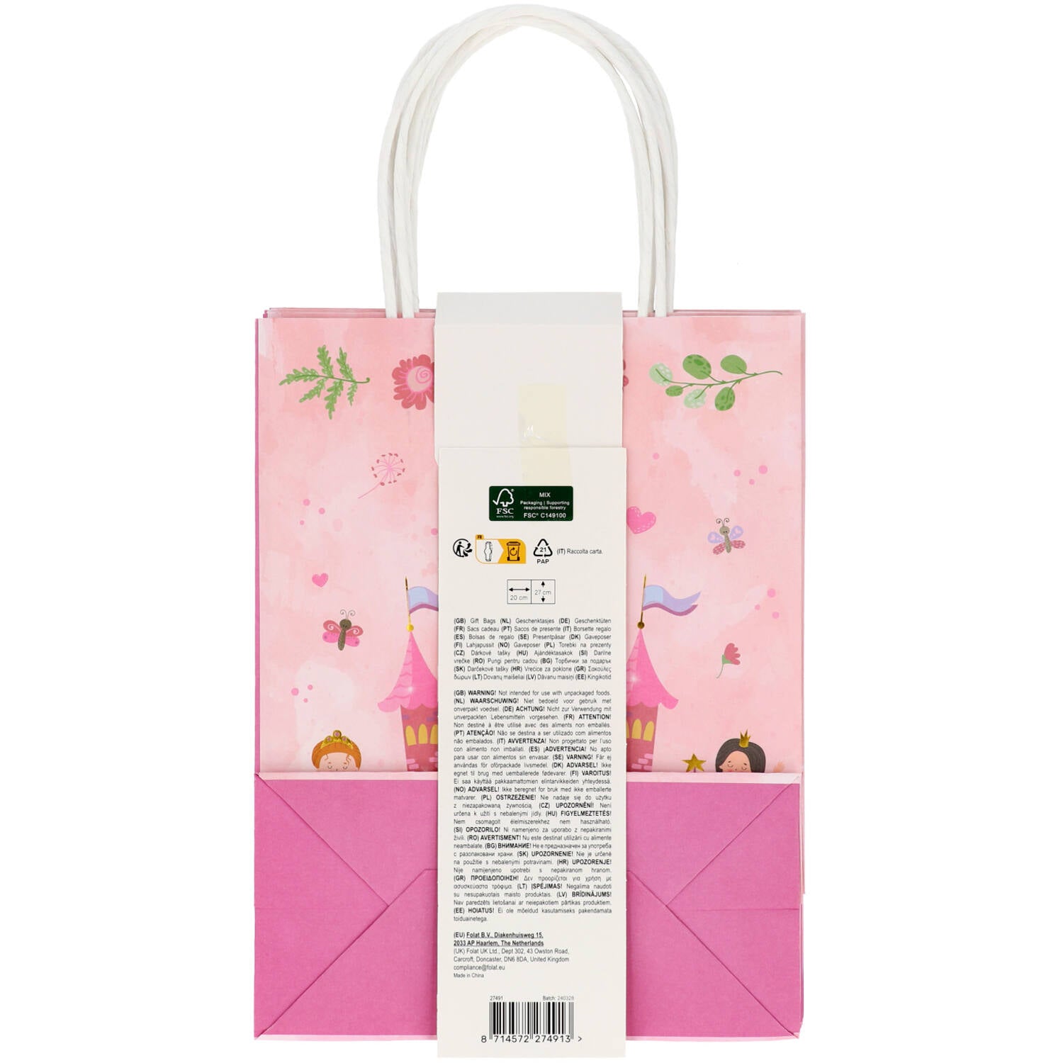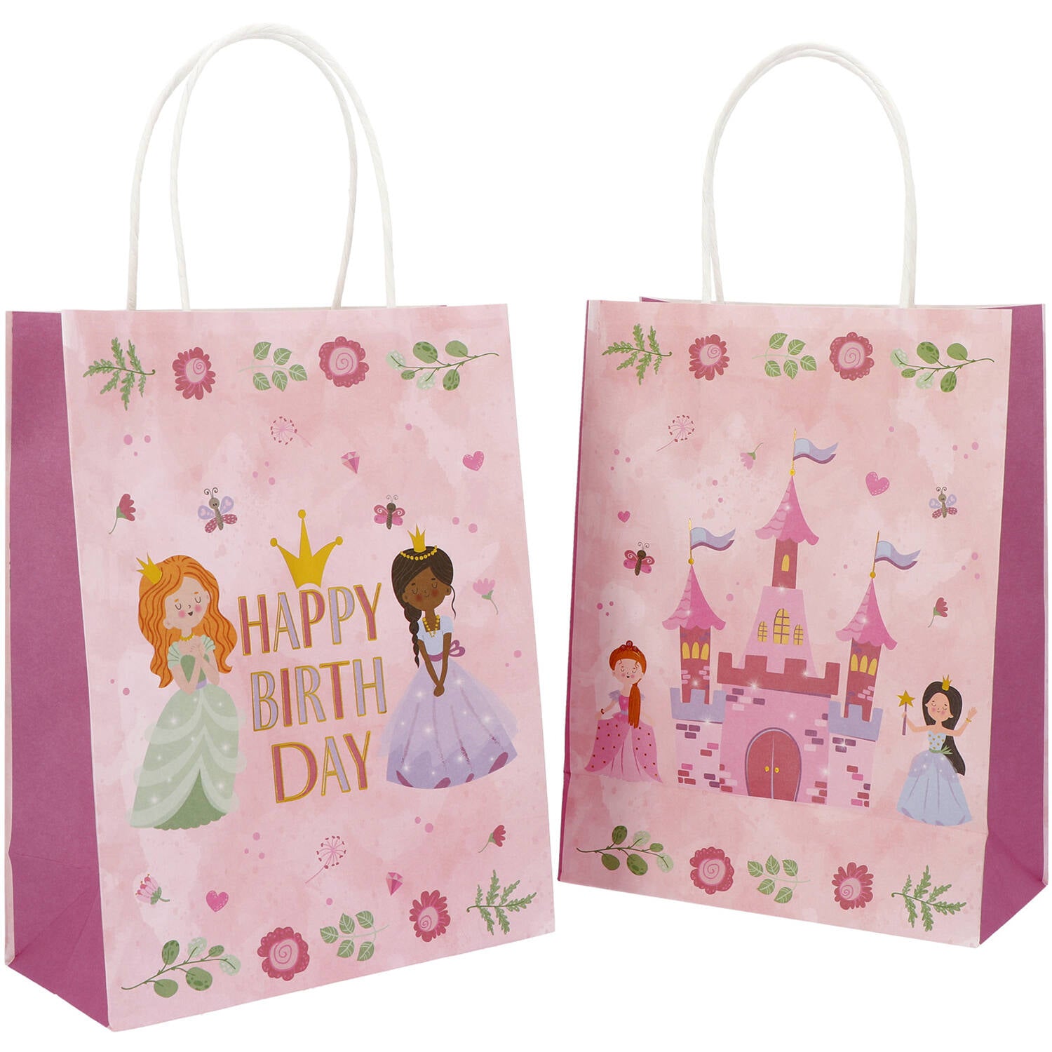 Na królewskie prezenty. Torebki na prezenty - Pretty Princess - 20 x 27 cm - 6 szt. Zawartość: 6 torebek na prezenty. Do wykorzystania na przykład podczas następujących przyjęć/imprez: Przyjęcie dla dzieci, Urodziny. Śliczne torebki na prezenty o wymiarach 20 x 27 x 10 cm. Delikatny róż z dwiema księżniczkami i napisem "HAPPY BIRTH DAY" na jednej stronie oraz zamkiem z dwiema księżniczkami na drugiej stronie. Wraz z uchwytem torby mają około 37 cm wysokości. Ze złotymi detalami, które naprawdę błyszczą dzięki zastosowanej technice tłoczenia na gorąco. Te torby na prezenty należą do kolekcji Pretty Princess od