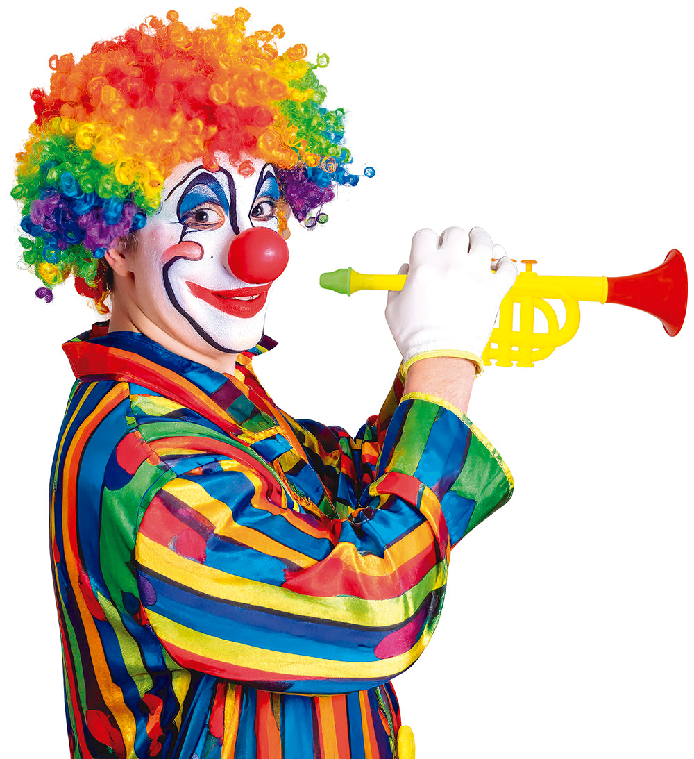 Rozkręć imprezę dzięki tej grającej trąbce! Utrzymana w wesołych żółto-czerwonych kolorach, idealna do zabawy na przyjęciach i przebieranych imprezach.