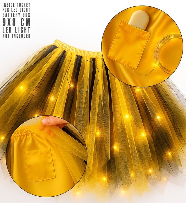 Ta żółto-czarna tutu to przyciągający wzrok i zabawny dodatek odzieżowy do kostiumów i imprez. Idealny na przebierane imprezy, karnawały, występy taneczne lub inne uroczyste okazje.