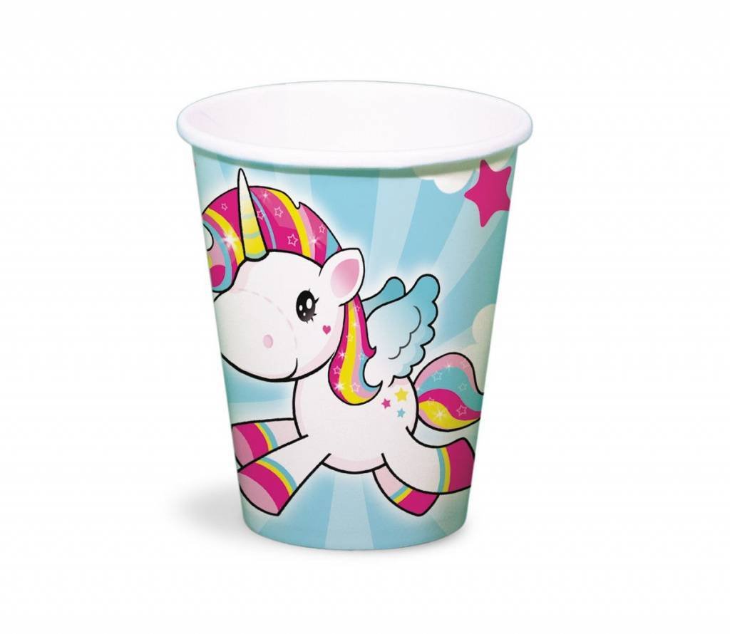 Kubki Jednorożec 250ml - 8 szt. Zawartość: 8 kubków. Kolor: wielokolorowe. Do wykorzystania na przykład na następujących przyjęciach/imprezach: Przyjęcie dla dzieci. Jeden kubek ma pojemność 250 ml. Artykuł jest wykonany z tektury.