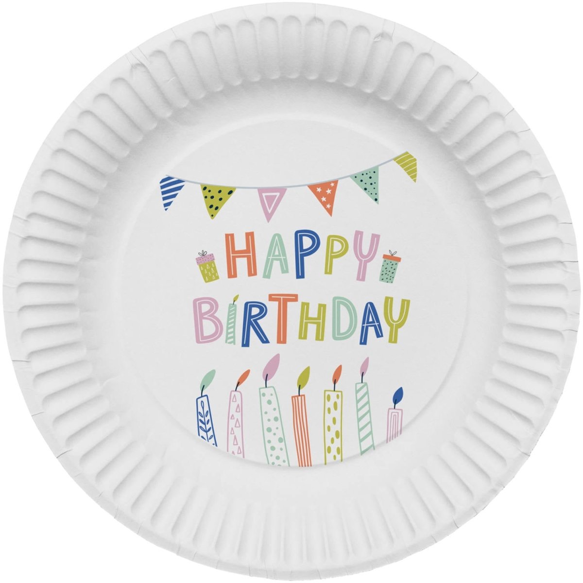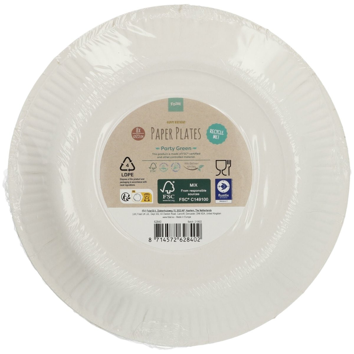 Talerzyki Eco Party 23cm - 8 szt. Zawartość: 8 talerzyków. Kolor: wielokolorowe. Do wykorzystania na przykład podczas następujących przyjęć/imprez okolicznościowych: Urodziny i Przyjęcie dla dzieci. Jeden talerz ma średnicę 23 cm. Artykuł jest wykonany z papieru z certyfikatem FSC®.