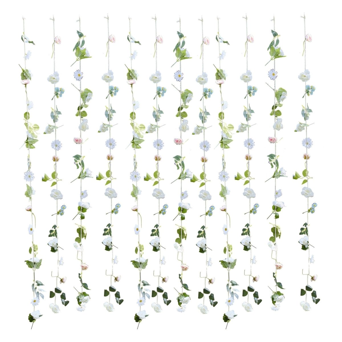 Ta piękna kwiatowa zasłona zawiera: 12 x 1,8 m pasm sztucznych kwiatów na sznurku.