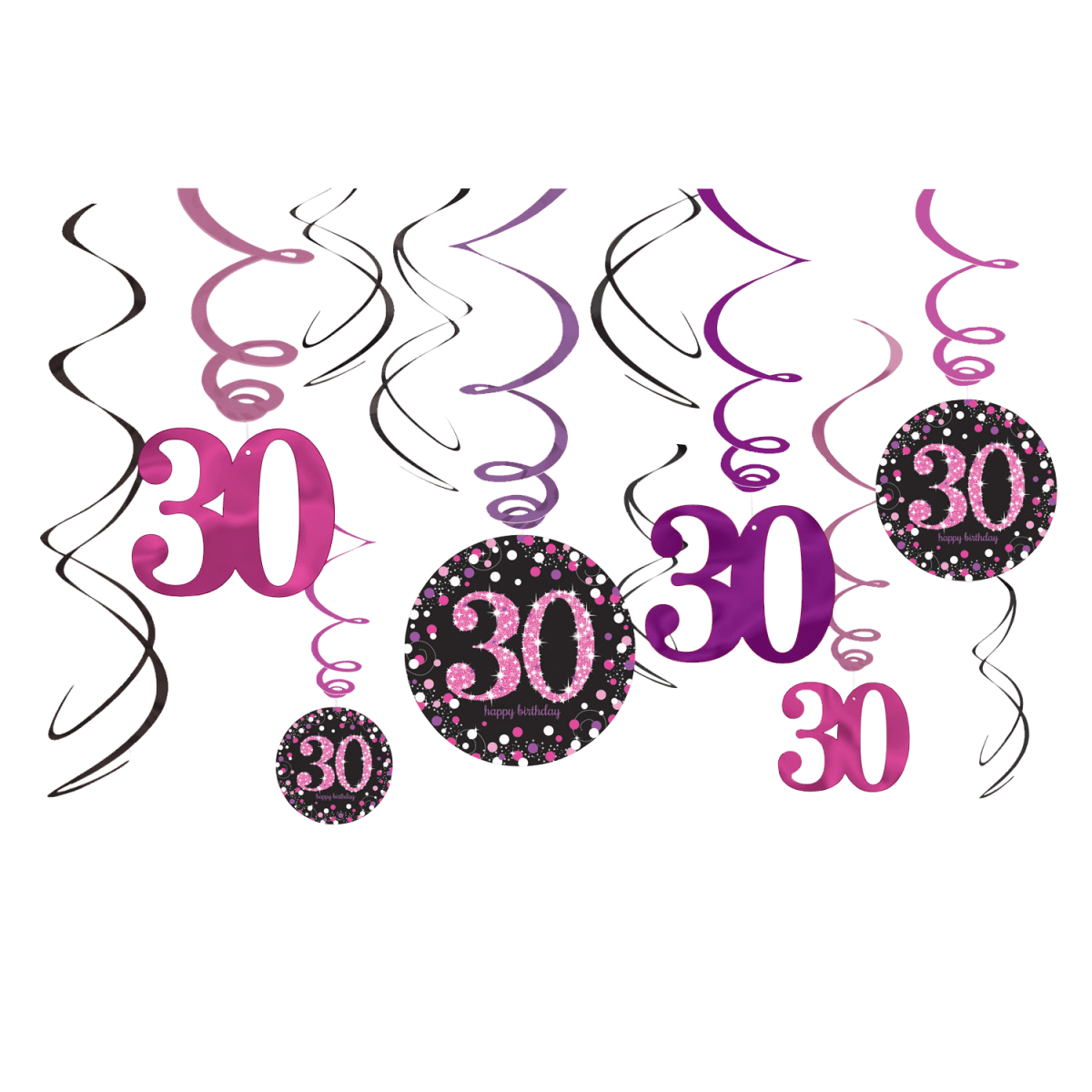 Dekoracja wisząca 30 lat 61cm Happy Birthday różowa 12szt