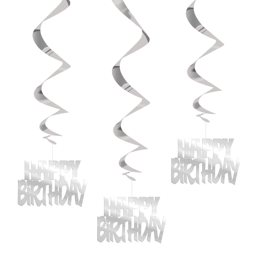 Dekoracja wisząca Happy Birthday Silver 81cm 3szt