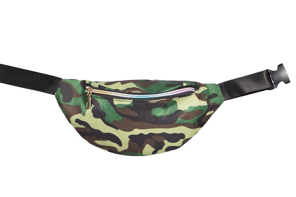 Wytrzymała torba biodrowa z wojskowym nadrukiem w kolorze zielonym, brązowym i czarnym. Idealna jako dodatek na imprezy tematyczne, przebierane lub festiwale.