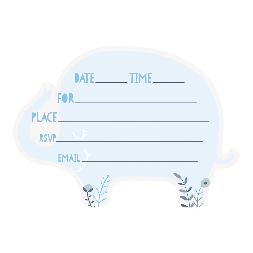 Zaproszenia ze słonikiem Niebieskie 8szt