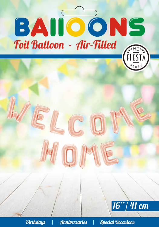 Zestaw balonów z literami Witaj w domu w kolorze różowego złota