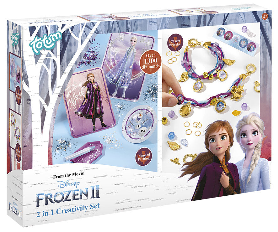 Stwórz własną brokatową sztukę Frozen i bransoletki przyjaźni z tym zestawem hobbystycznym! Udekoruj Annę, Olafa i Elsę ponad 1300 brokatowymi diamentami i zaprojektuj dwie piękne bransoletki przedstawiające Annę i Elsę z filmu Frozen 2. Ciesz się wspomnieniami z ulubionego filmu, noś Annę i Elsę przy sobie każdego dnia.