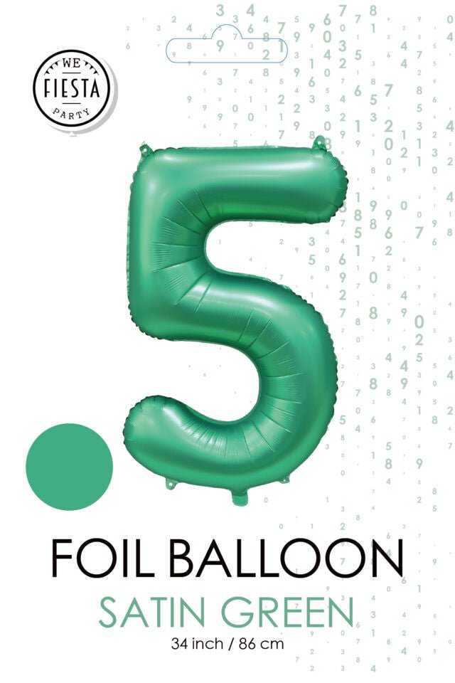 Zielony balon z cyfrą 5 lat, połysk 86 cm