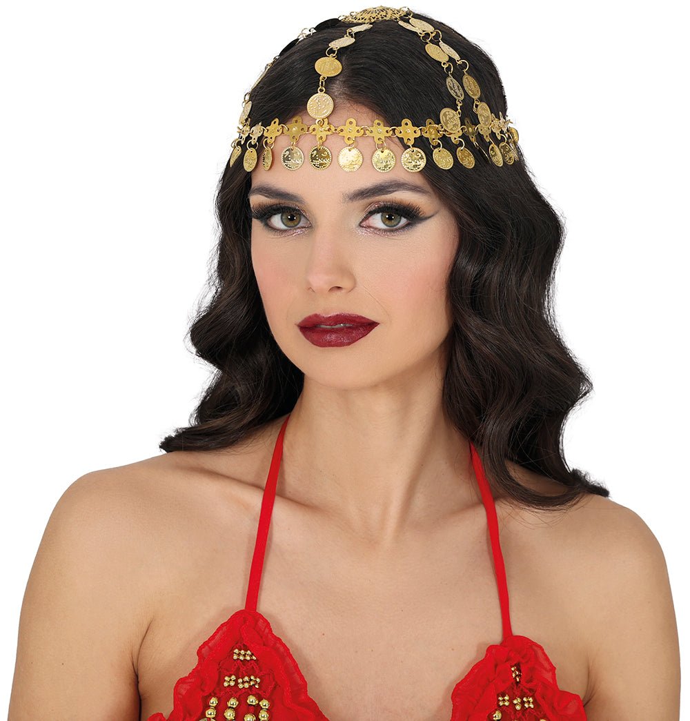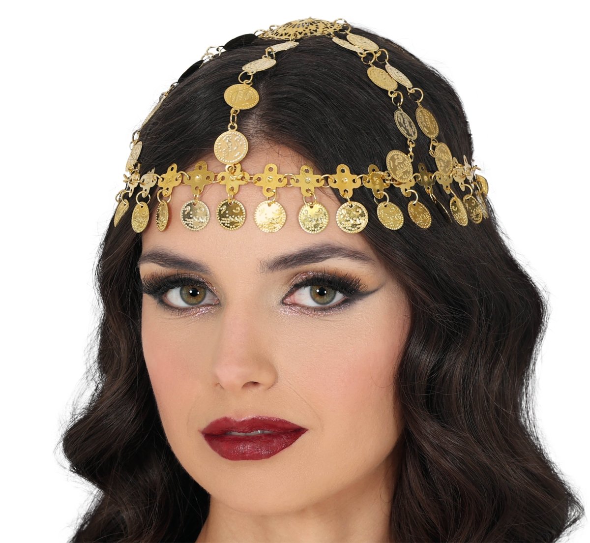 Nadaj swojemu strojowi elegancki i odświętny wygląd dzięki tej złotej opasce z monetami. Idealna jako dodatek na imprezy tematyczne, występy taneczne lub jako przyciągający wzrok detal kostiumu. Opaska jest lekka i wygodna w noszeniu