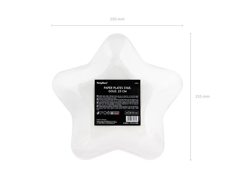 Złote talerze Gwiazda 23cm 6szt